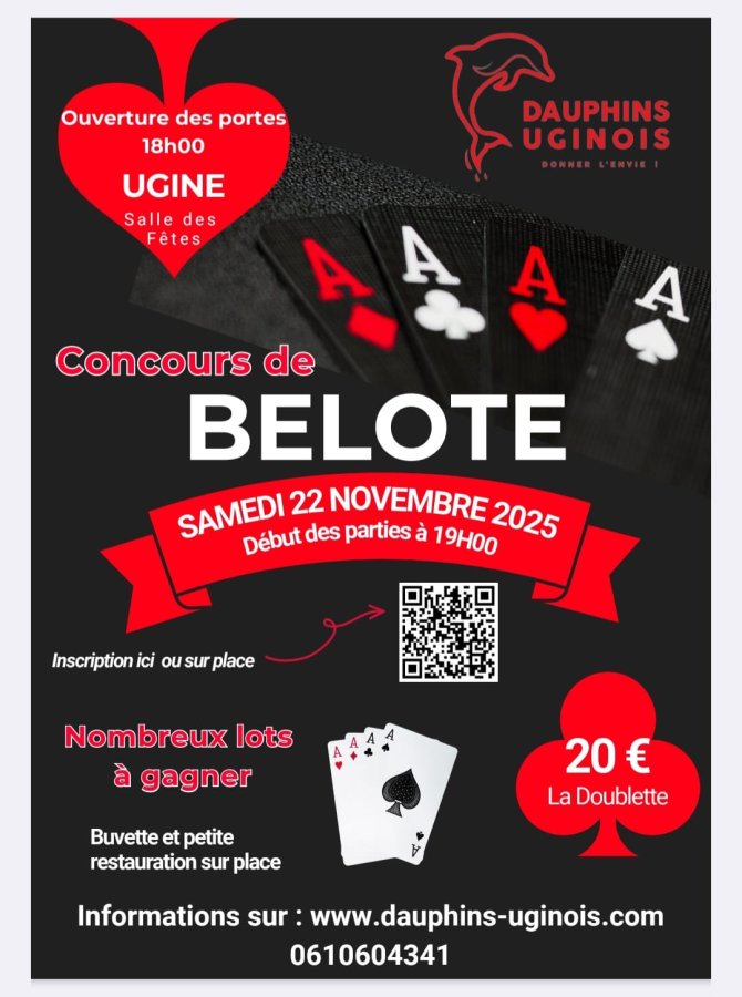 Inscriptions : https://www.payasso.fr/concours-de-belote/dauphins-uginois